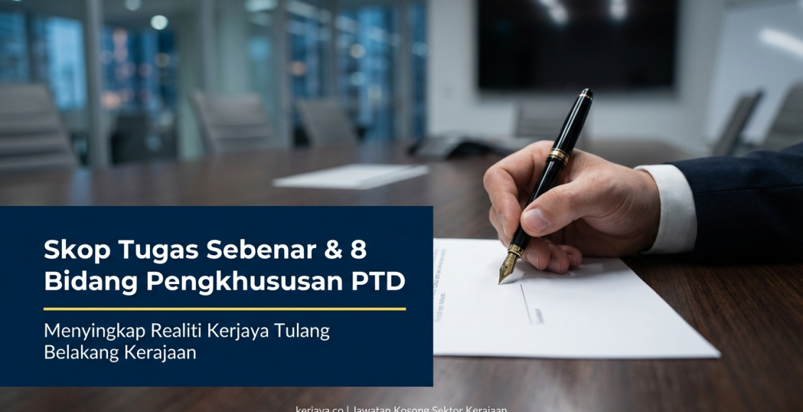 Ramai calon memohon jawatan ini tanpa benar-benar memahami skop tugas sebenar PTD. Artikel ini akan menghuraikan realiti tugas harian PTD serta menerangkan lapan (8) bidang pengkhususan utama yang membentuk kerjaya ini.