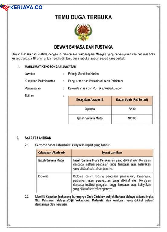 Iklan Jawatan Kosong Dewan Bahasa Dan Pustaka