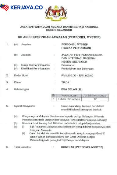 Iklan Jawatan Kosong Jabatan Perpaduan Negara Dan Integrasi Nasional Negeri Selangor