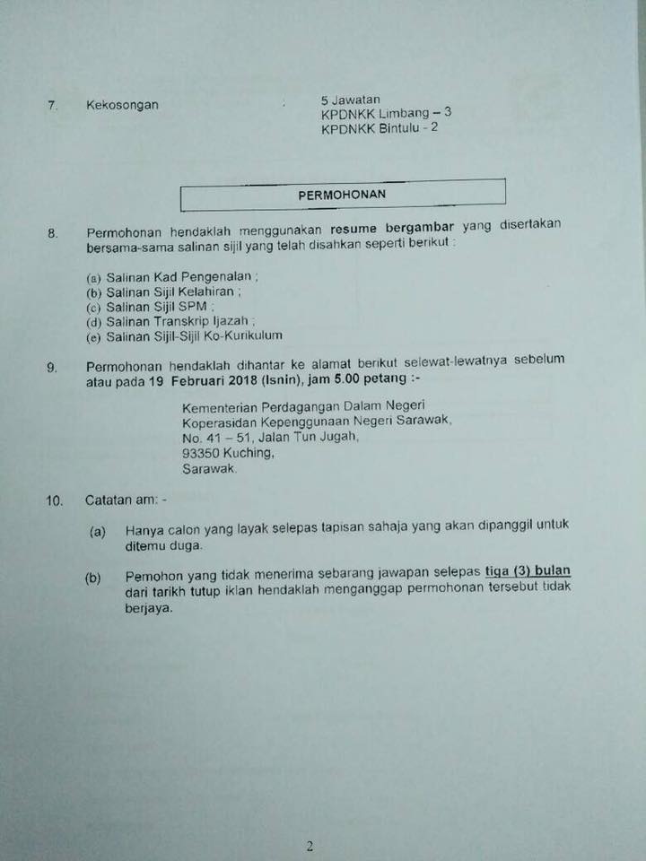 Berikut Merupakan Iklan Jawatan Kosong :