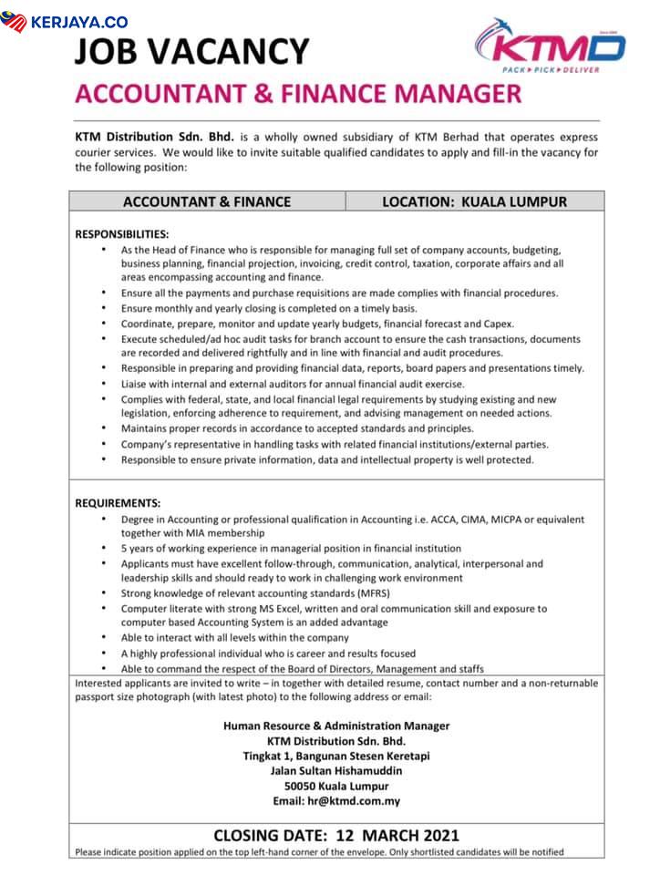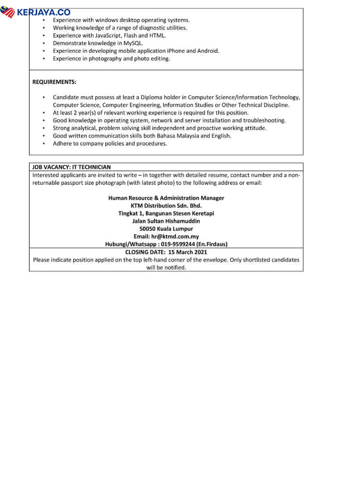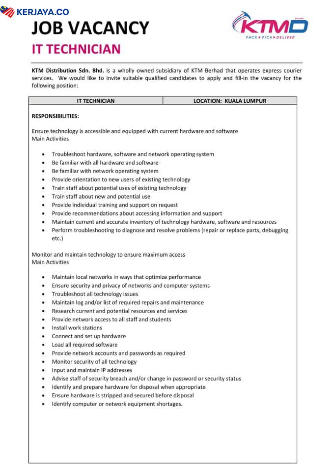 Iklan Jawatan Kosong KTM Distribution Sdn Bhd