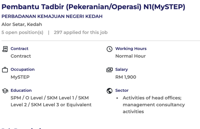 Iklan Kini Perbadanan Kemajuan Negeri Kedah ~ Pembantu Tadbir