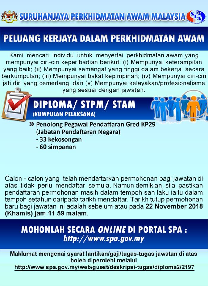 - Tarikh Tutup Permohonan: 22 November 2018