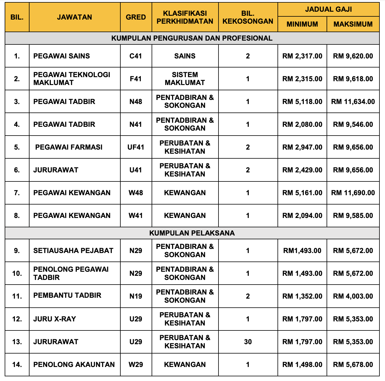 Jawatan kosong terkini yang diiklankan adalah seperti berikut: