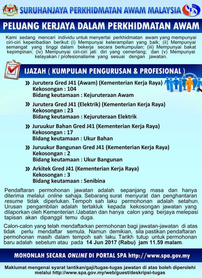 1. Jurutera Gred J41(Awam) 104 kekosongan