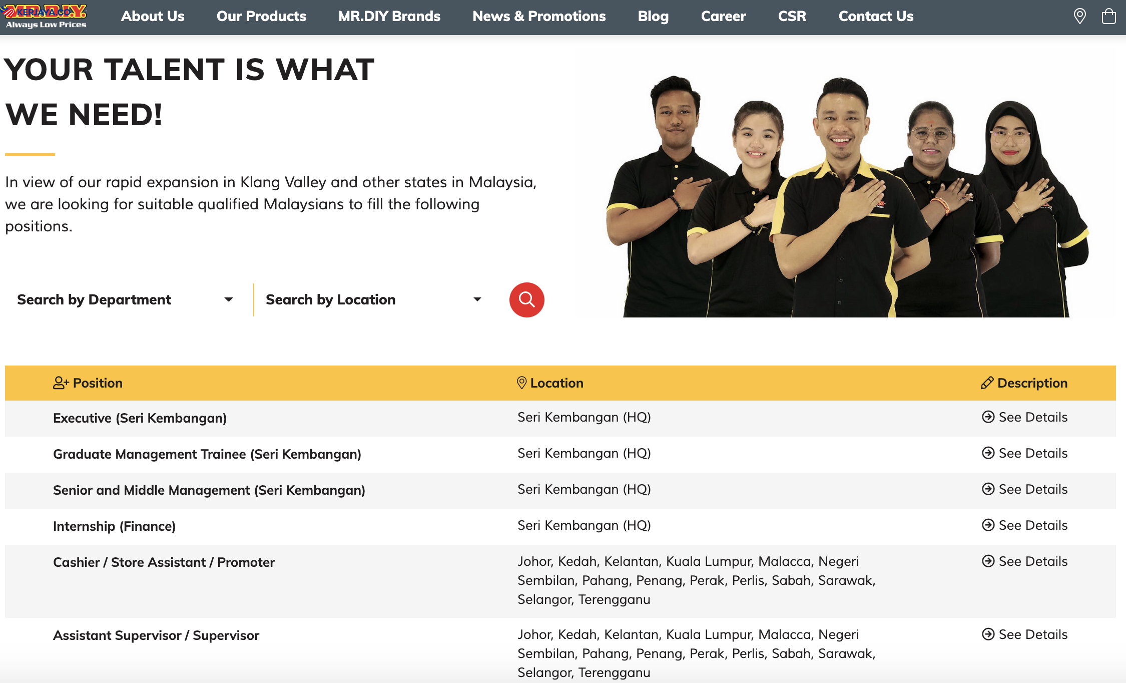 Mr DIY kini menawarkan sebanyak 1000 kekosongan pelbagai jawatan di cawangan-cawangannya.