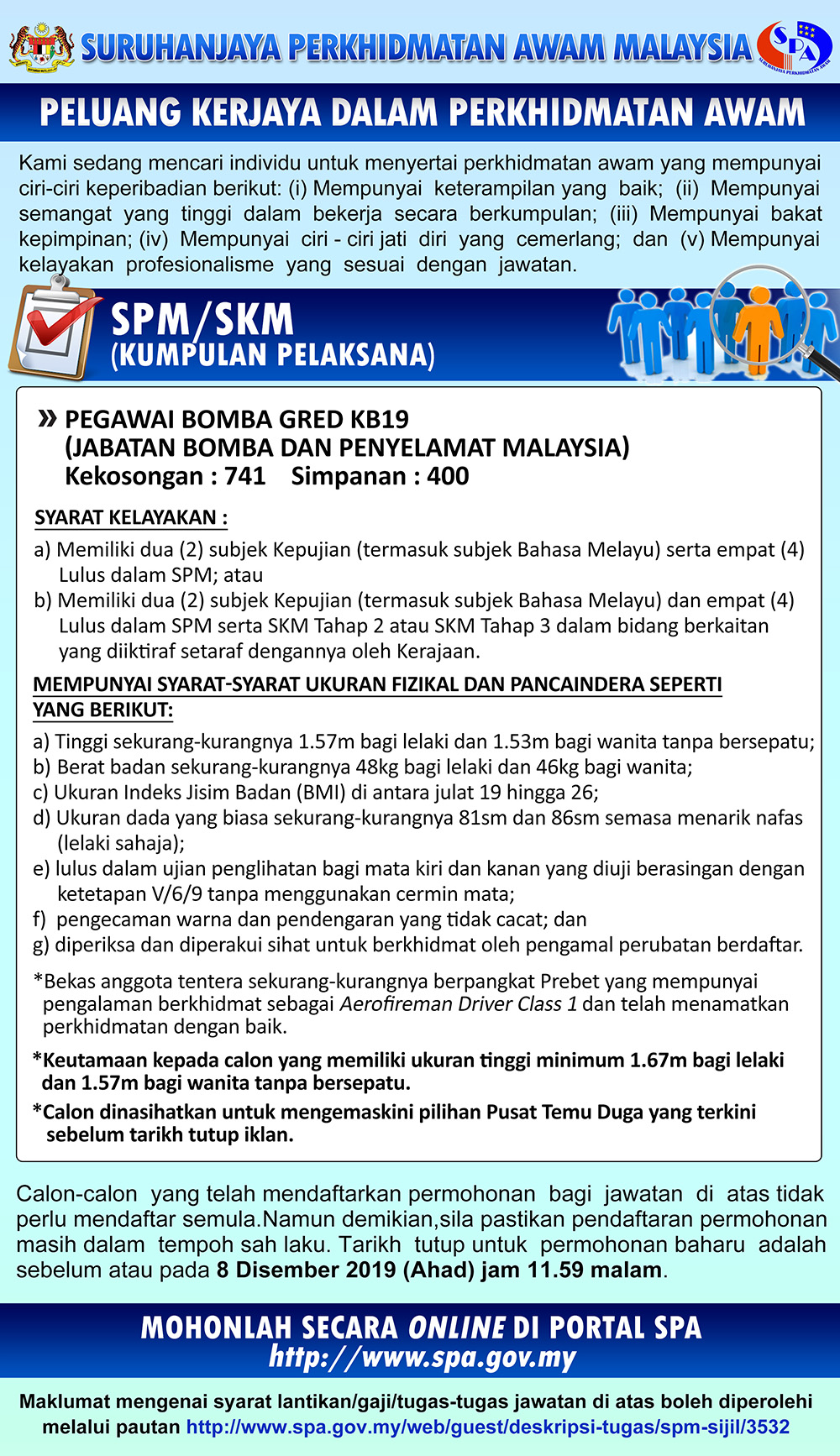 - Tarikh Tutup Permohonan: 08 Disember 2019