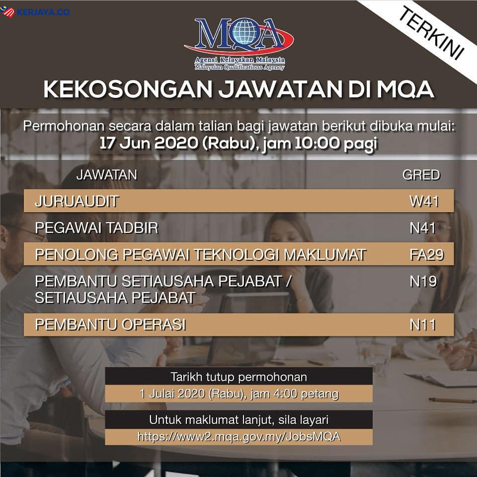 Permohonan Jawatan Kosong Agensi Kelayakan Malaysia (MQA).