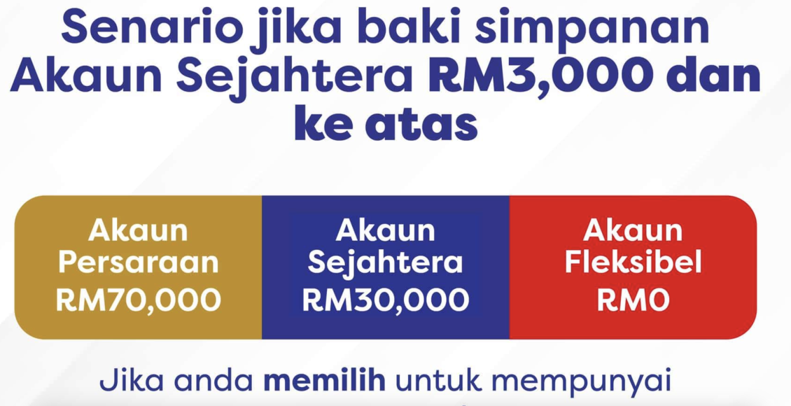 Akaun Sejahtera  Melebihi RM1,000 dan tidak melebihi RM3,000  Amaun yang dipindahkan ke Akaun Fleksibel adalah RM1,000, manakala baki adalah kekal dalam Akaun Sejahtera