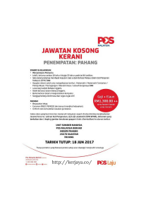 Perhatian kepada pemohon yang berminat. Untuk makluman permohonan jawatan ini adalah secara terus melalui Pos Malaysia. Sila ikuti langkah memohon yang disiarkan dalam iklan kekosongan jawatan di bawah agar anda tidak terlepas menjawat jawatan ini.