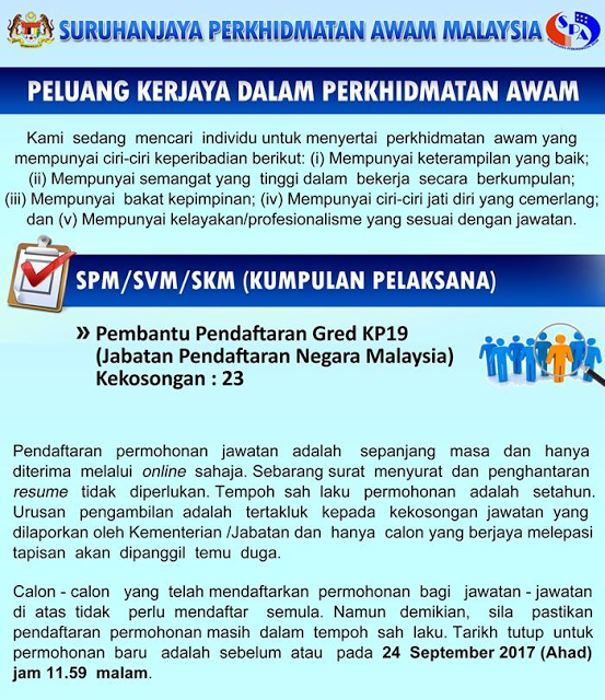 Return to "Bagaimana Mohon Kerja Jabatan Pendaftaran Negara (JPN)" Jawatan Kosong Jabatan Pendaftaran Negara (JPN) Next