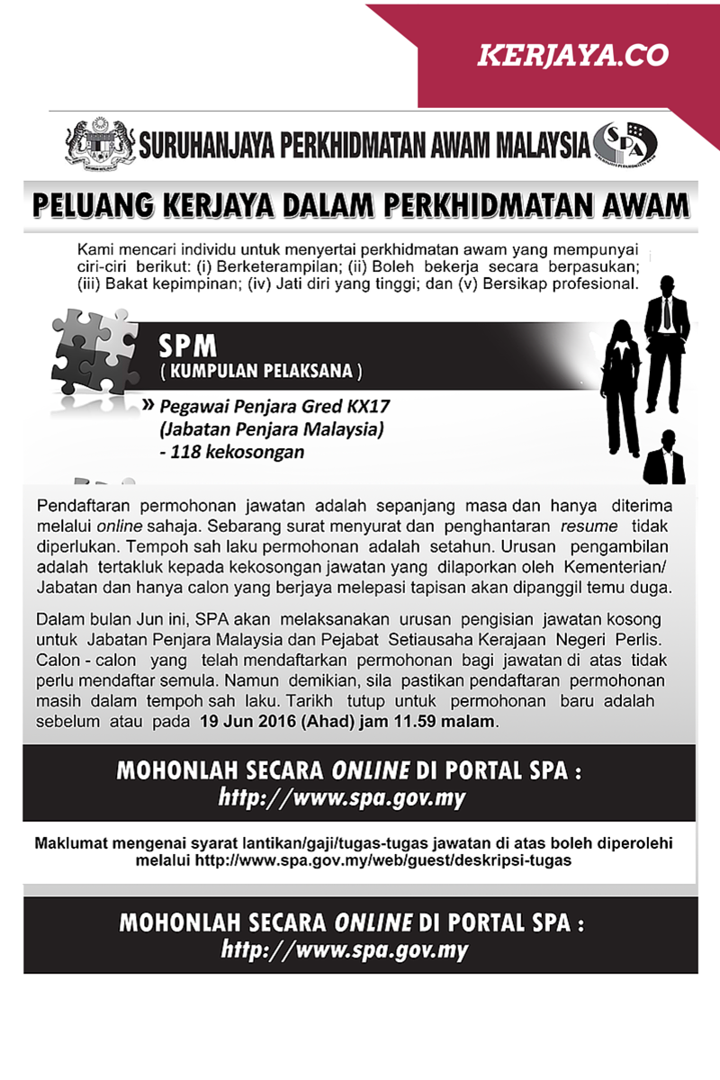 Return to "Bagaimana Mohon Kerja Pegawai Penjara Gred KA19" Iklan Jawatan Kosong Pegawai Penjara Gred KX17 Next Previous
