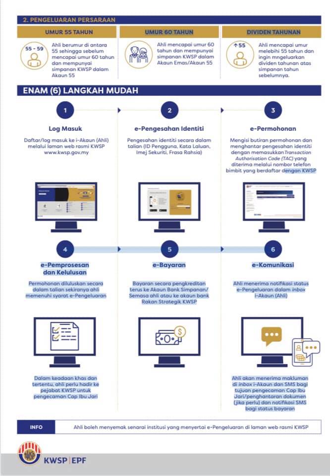 Untuk maklumat lanjut anda boleh terus layari laman web rasmi KWSP di https://www.kwsp.gov.my/