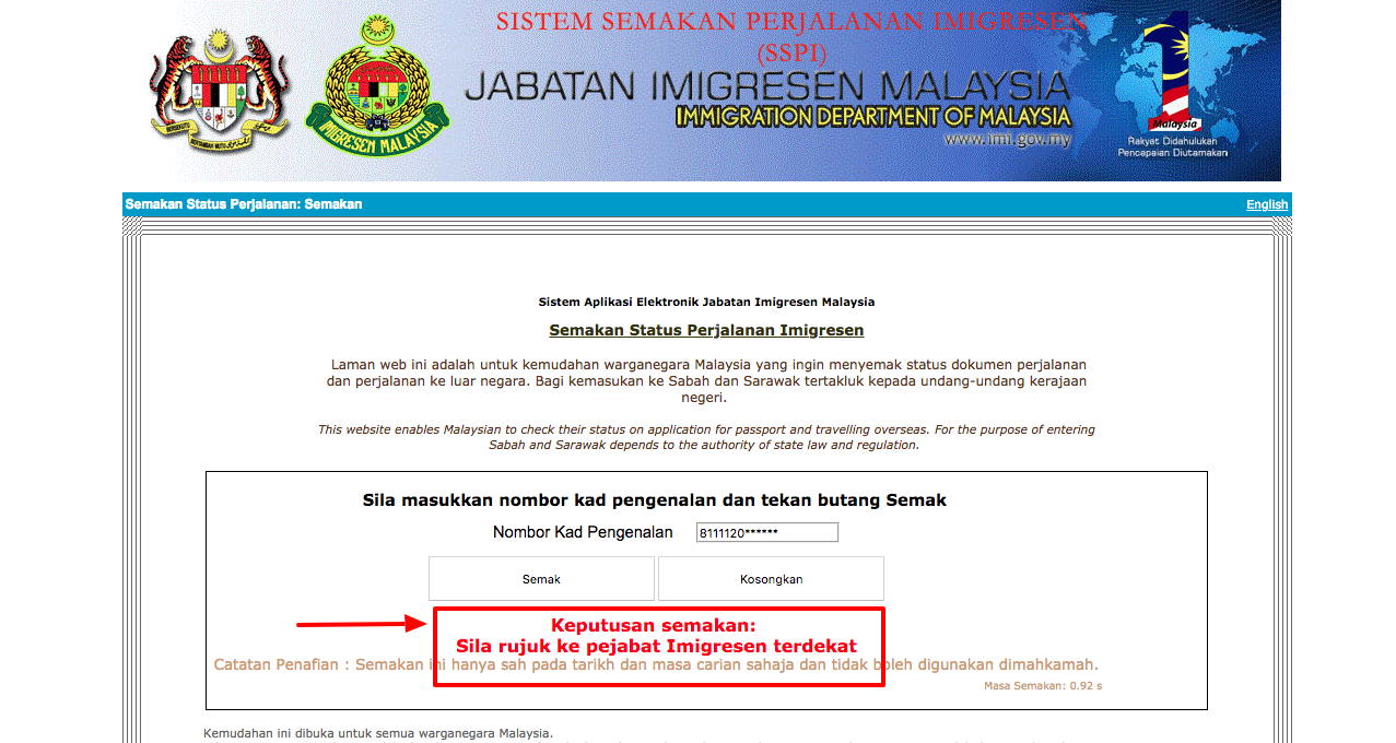 5. Keputusan Menunjukan Status “Sila Rujuk Ke Pejabat Imigresen Terdekat” Maka Anda Telah di Senarai Hitam!
