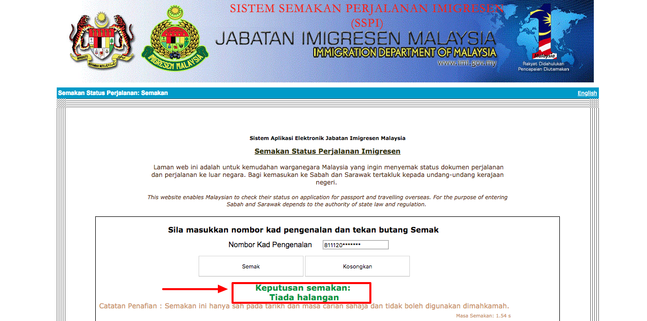 4. Jika Keputusan Semakan Blacklist Menunjukkan “Tiada Halangan” Maka Anda Bebas Untuk Keluar Negara. Namun, jika
