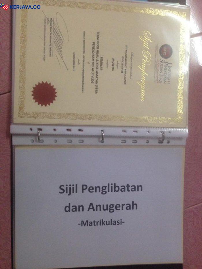 Sambil-sambil kemas barang terjumpa file ni. Ni file nak gi temuduga guru di SPP Putrajaya hari tu. Selalunya dekat2 nak temuduga ramai yang kalut tak tahu nak letak apa dalam file termasuklah saya dulu sebab banyak sangat.