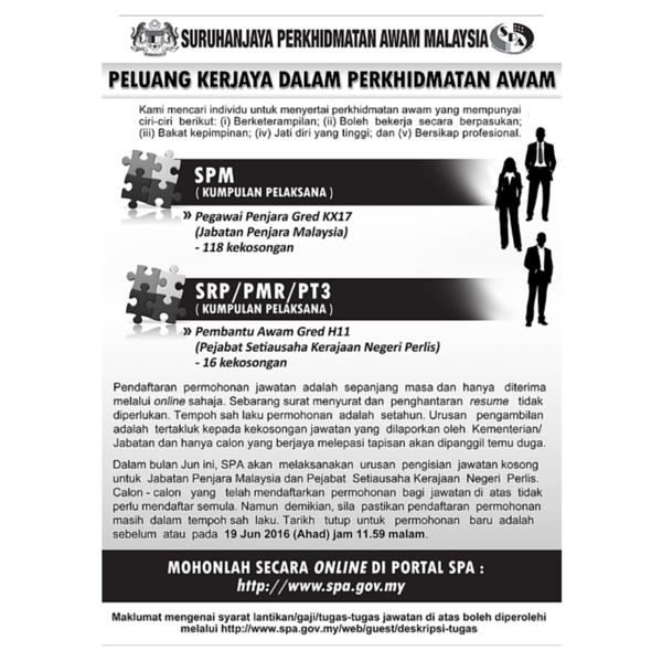 Jawatan Kosong Terkini Suruhanjaya Perkhidmatan Awam Malaysia (SPA).