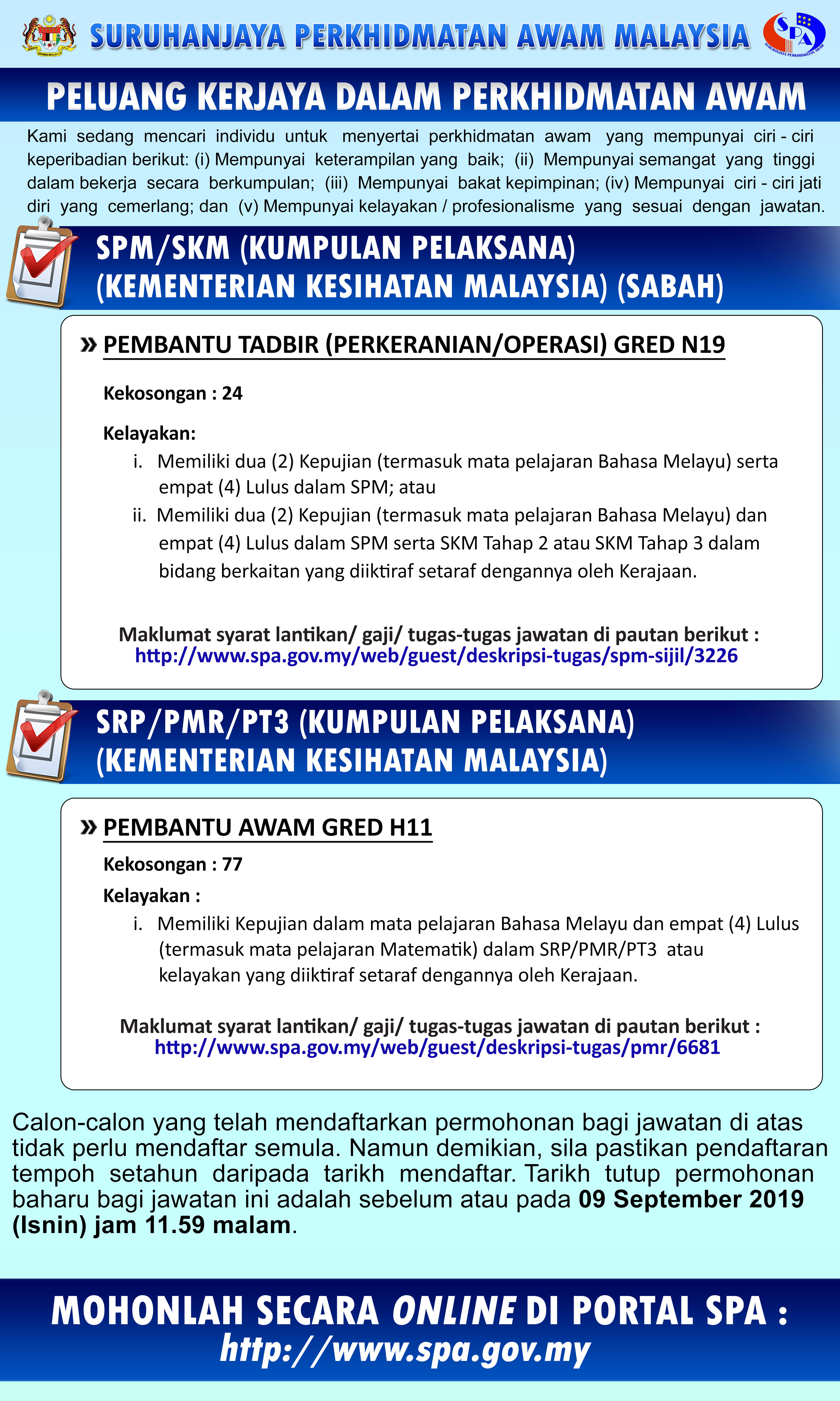 Portal SPA mengumumkan pengambilan untuk mengisi kekosongan jawatan seperti di bawah: