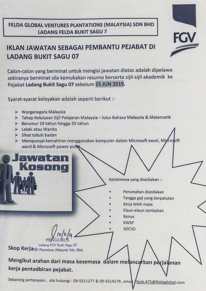 - Nama Majikan: Felda Global Ventures Plantations (Malaysia)Sdn Bhd