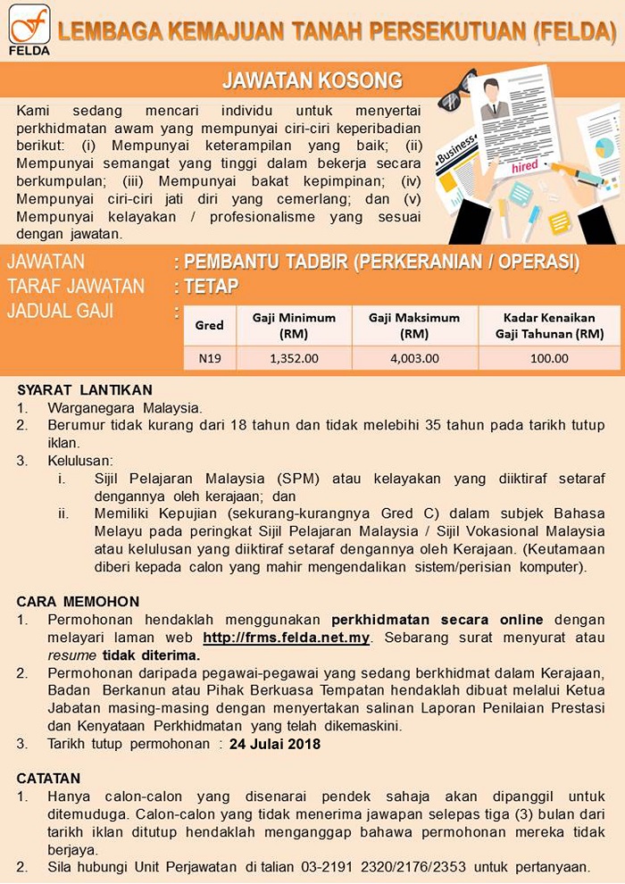FELDA (Lembaga Kemajuan Tanah Persekutuan) ~ Kekosongan Jawatan Pembantu Tadbir Perkeranian Seluruh Negeri