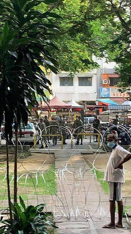 Sejumlah anggota tentera lengkap bersenjata tiba ke pasar tersebut pada pukul 1 pagi dan bertindak menutup keseluruhan pasar dengan lebih banyak kawad berduri dan mengawal pintu masuk dan keluar.