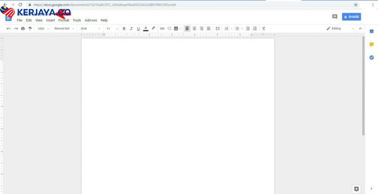 Jadi seperti biasa, anda perlu create Google Doc untuk mula buat kerja atau assignment anda. Mesti kebanyakkan pembaca tahu macam mana nak guna Google Doc ni kan lagi-lagi pelajar sebab senang nak gabungkan assignment. Bagi yang tak tahu pulak, anda hanya perlu taip ‘Google Doc’, pilih go to Google doc, log in email anda, klik start a new document (blank). Senang sahaja!