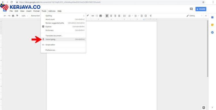 2. Select ‘Tool’ Dan Klik ‘Voice Typing’