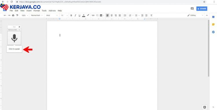 Dah selesai pilih bahasa? Kalau dah, anda terus je klik simbol microphone tu dan cakap apa yang nak ‘ditulis’ dalam tugasan itu. Dan boleh mula buat tugasan anda dengan bercakap!