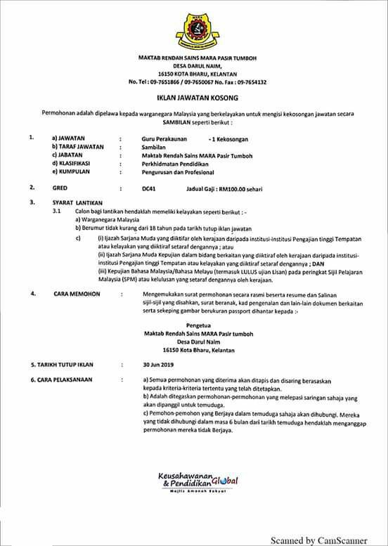 - Tarikh Tutup Permohonan: 30 Jun 2019