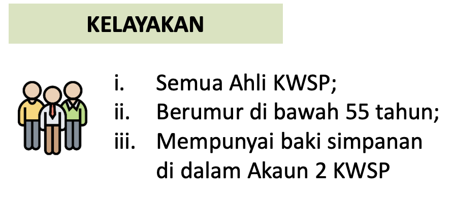 Melalui Pendaftaran Permohonan Pengeluaran i-Lestari KWSP ini, pencarum KWSP berusia bawah 55 tahun boleh membuat pengeluaran KWSP akaun 2 sebanyak RM500 sebulan selama tempoh 12 bulan.