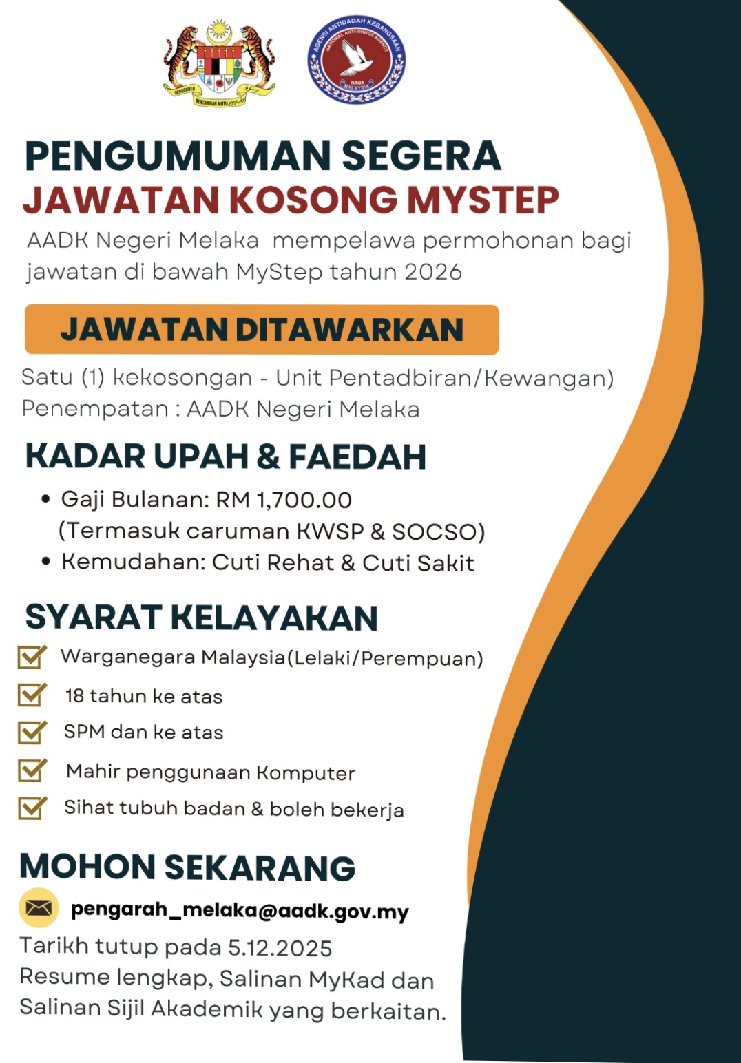 Iklan Jawatan Agensi Antidadah Kebangsaan (AADK)