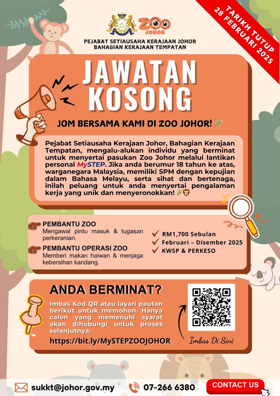 Iklan Jawatan Bahagian Kerajaan Tempatan, Pejabat Setiausaha Kerajaan Johor (Zoo Johor) BORANG PERMOHONAN