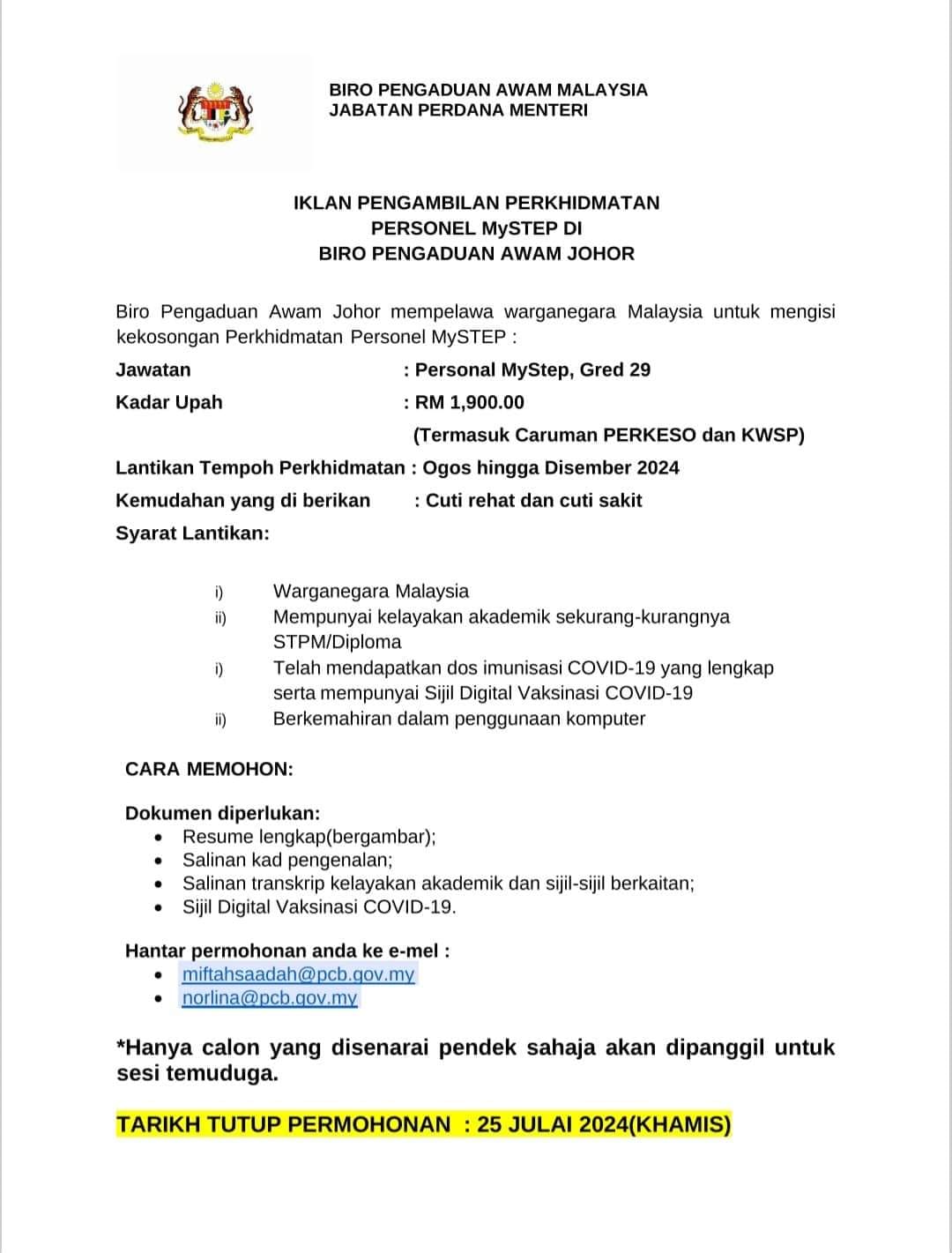 Iklan Jawatan Biro Pengaduan Awam, Jabatan Perdana Menteri (JPM)