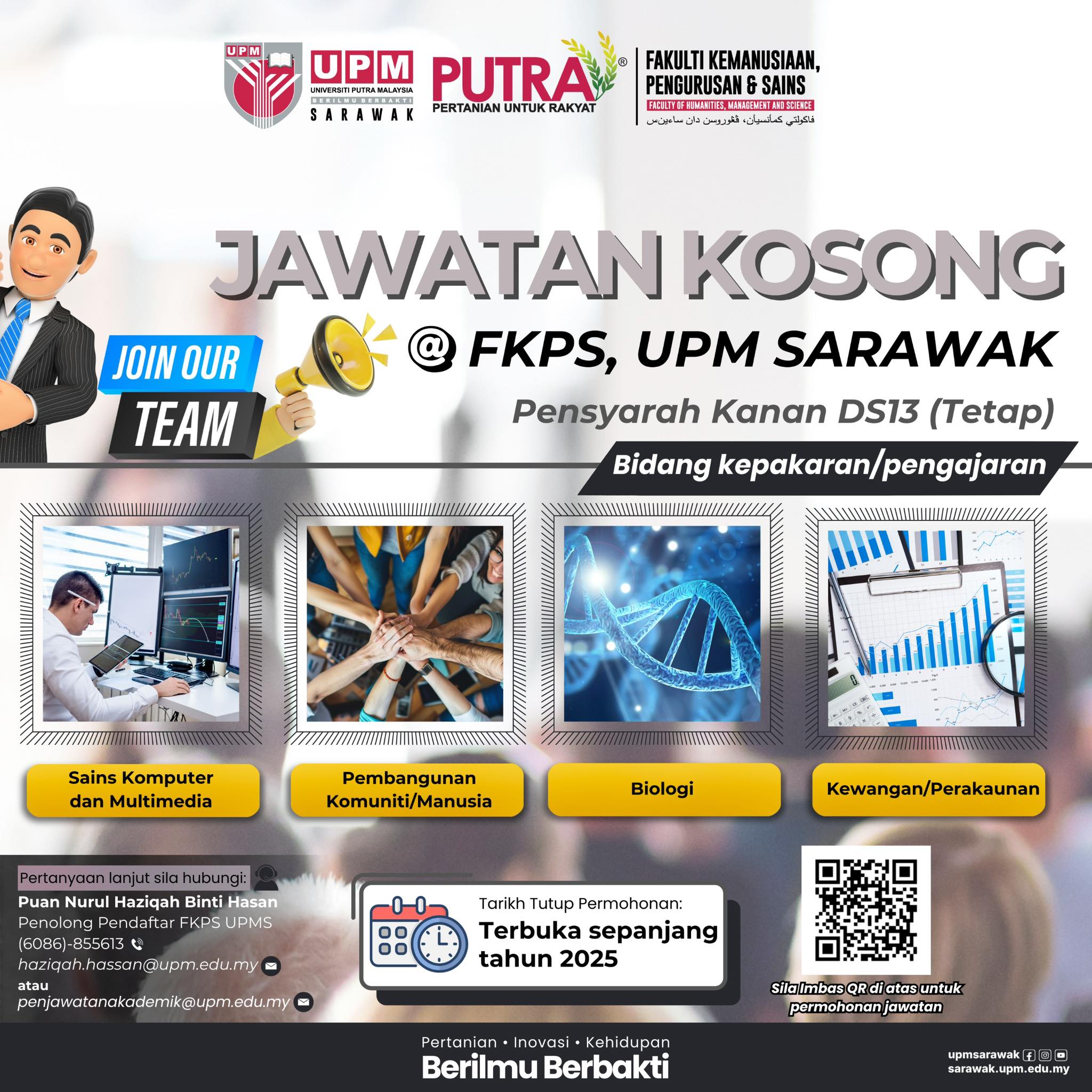Iklan Jawatan Fakulti Kemanusiaan, Pengurusan dan Sains (FKPS), Universiti Putra Malaysia Sarawak (UPMS) RUJUKAN IKLAN
