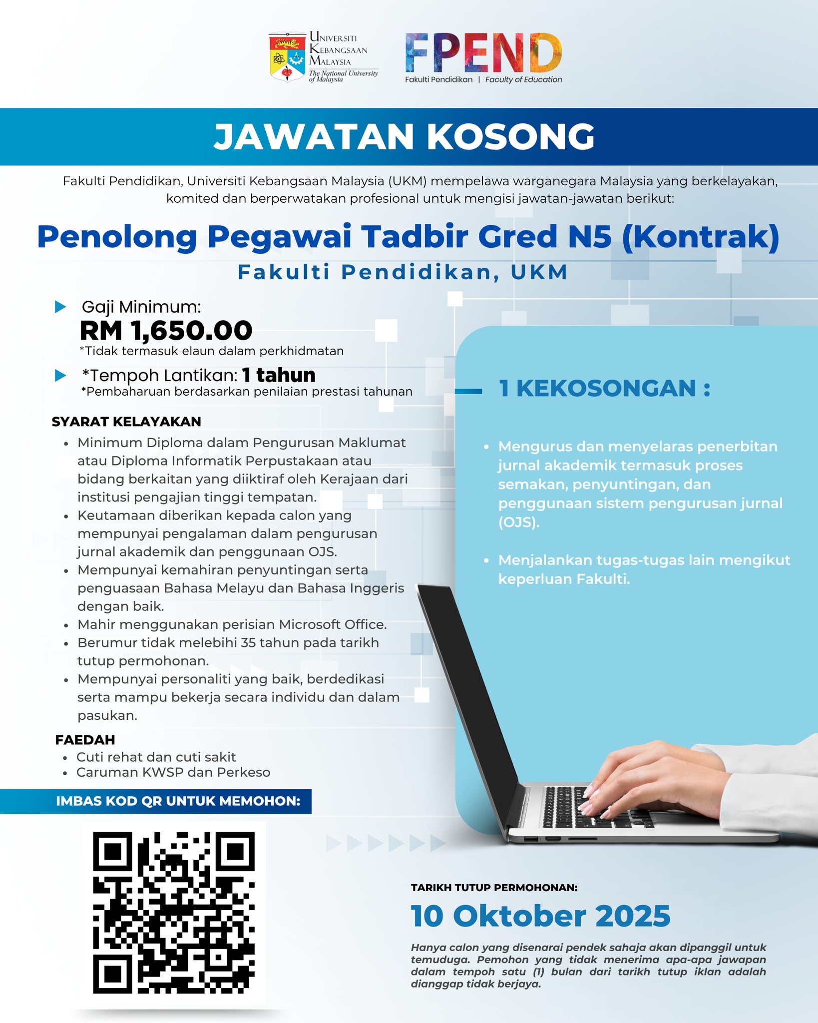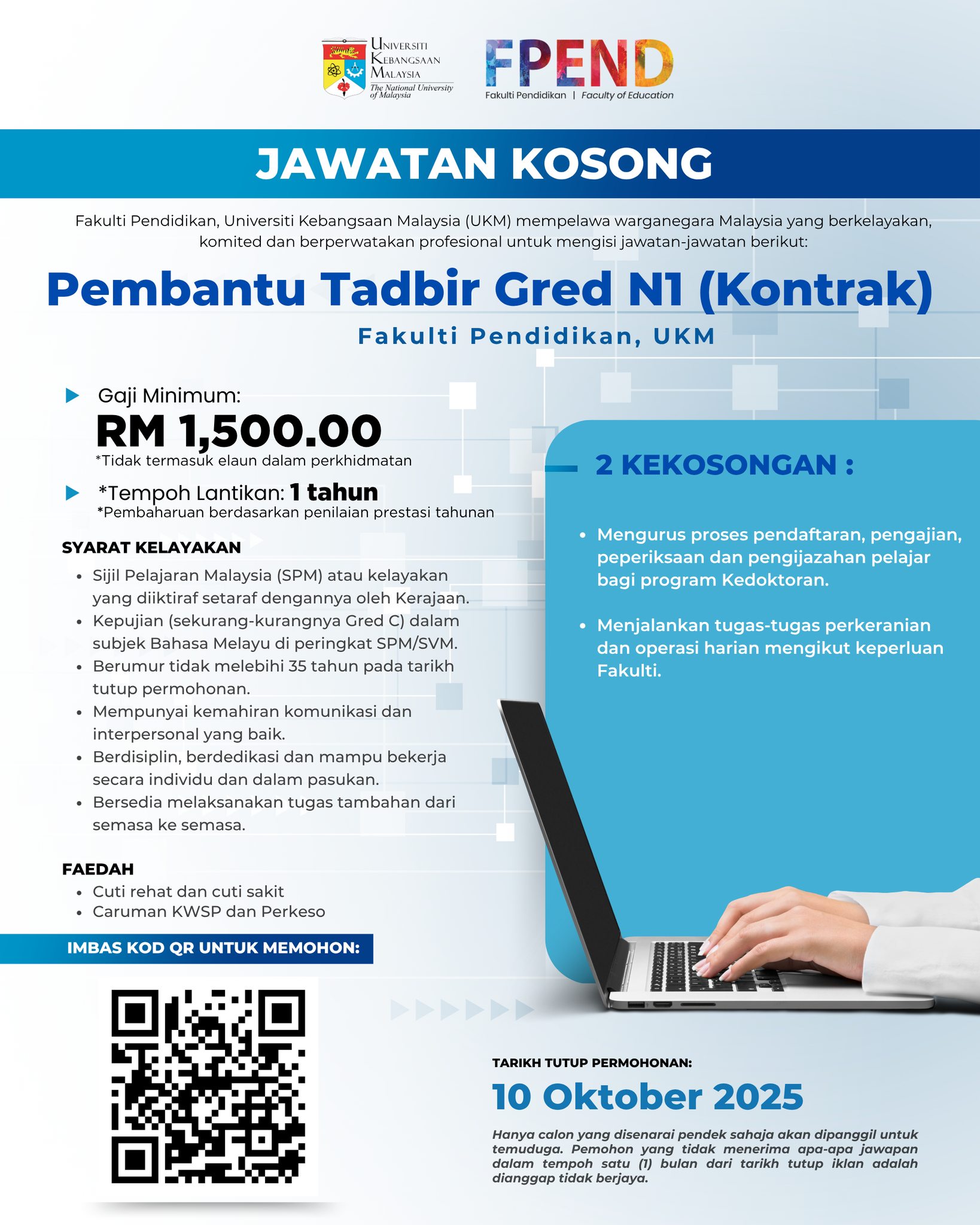 Iklan Jawatan Fakulti Pendidikan, Universiti Kebangsaan Malaysia (UKM)