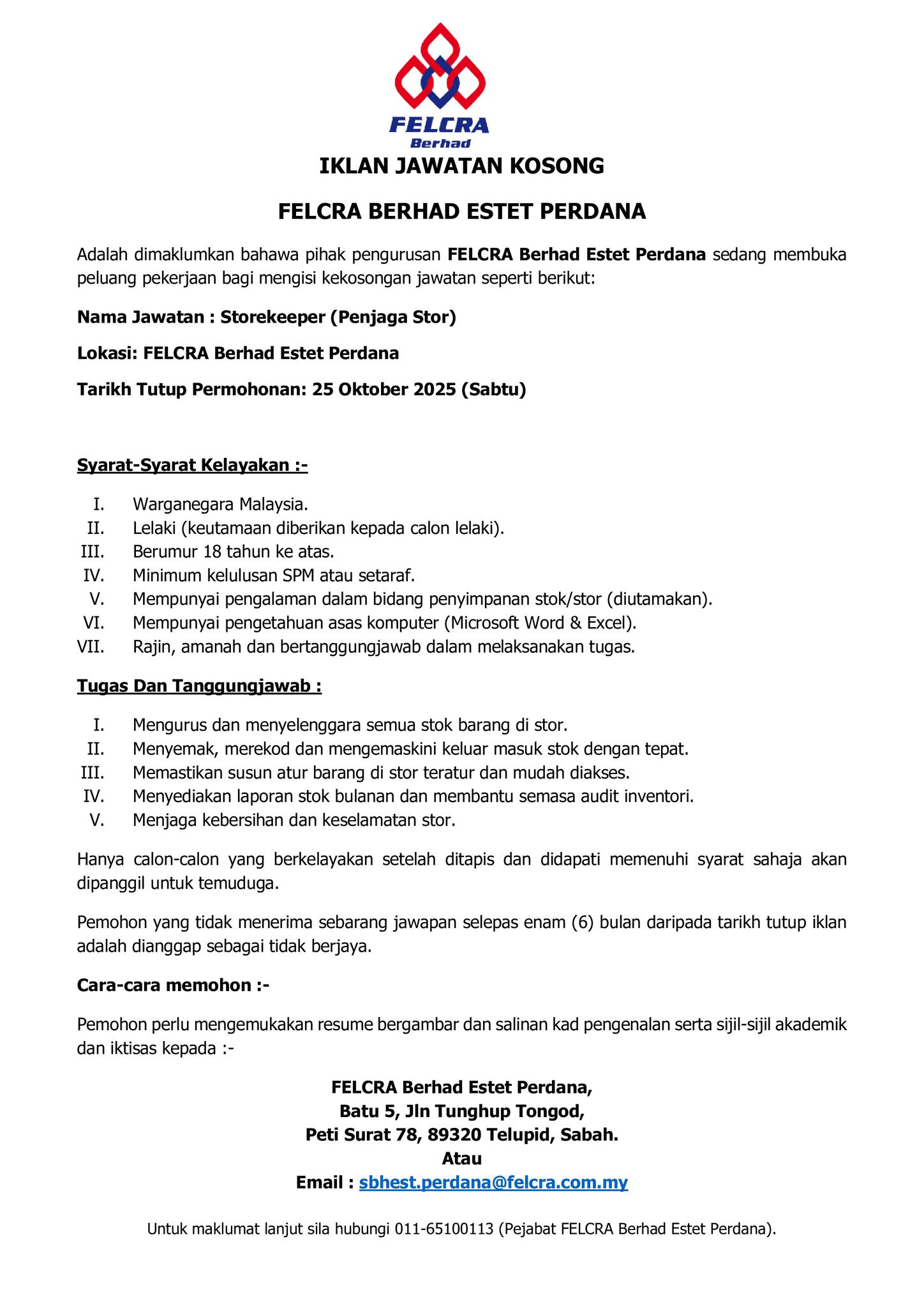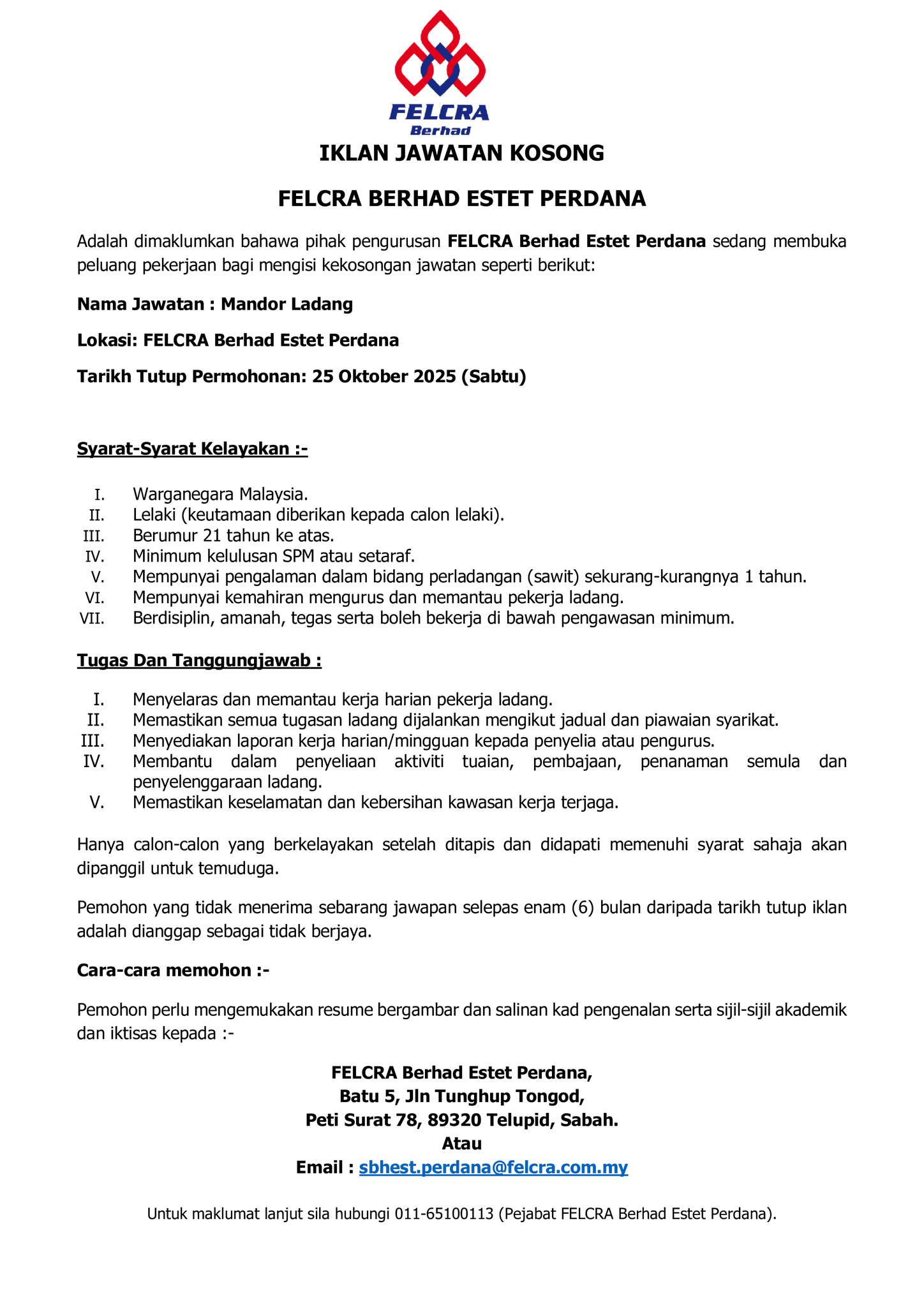 Iklan Jawatan Felcra Berhad