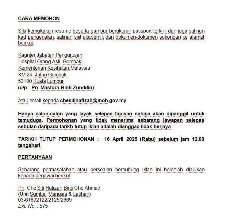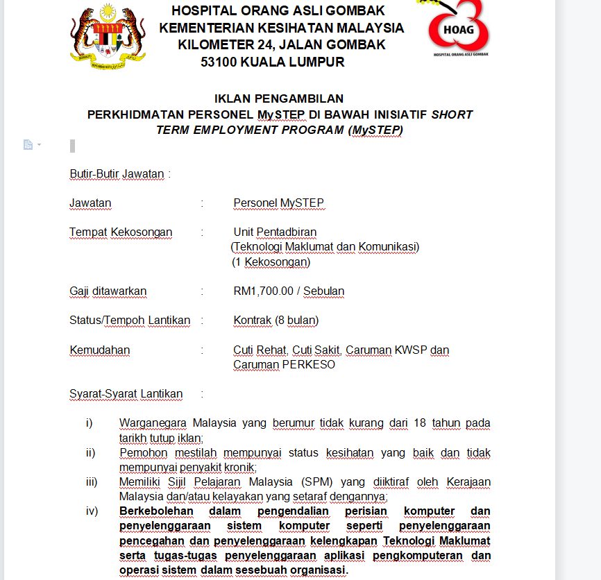 Iklan Jawatan Hospital Orang Asli Gombak (HOAG)