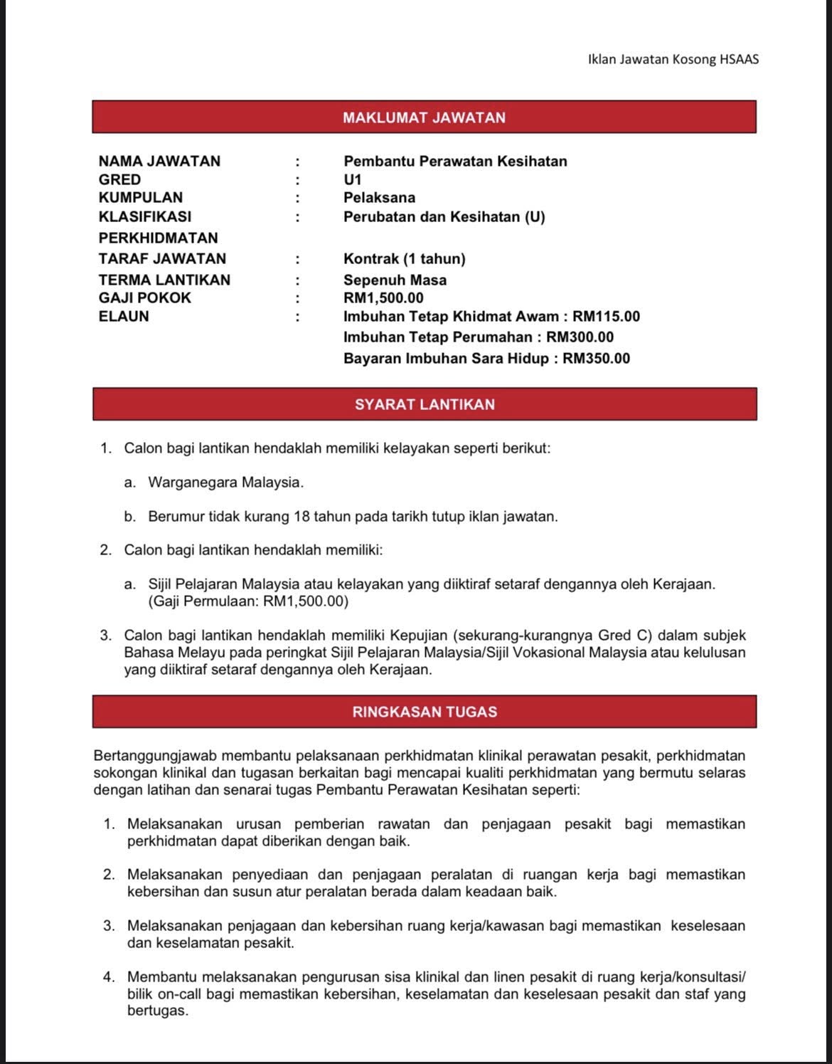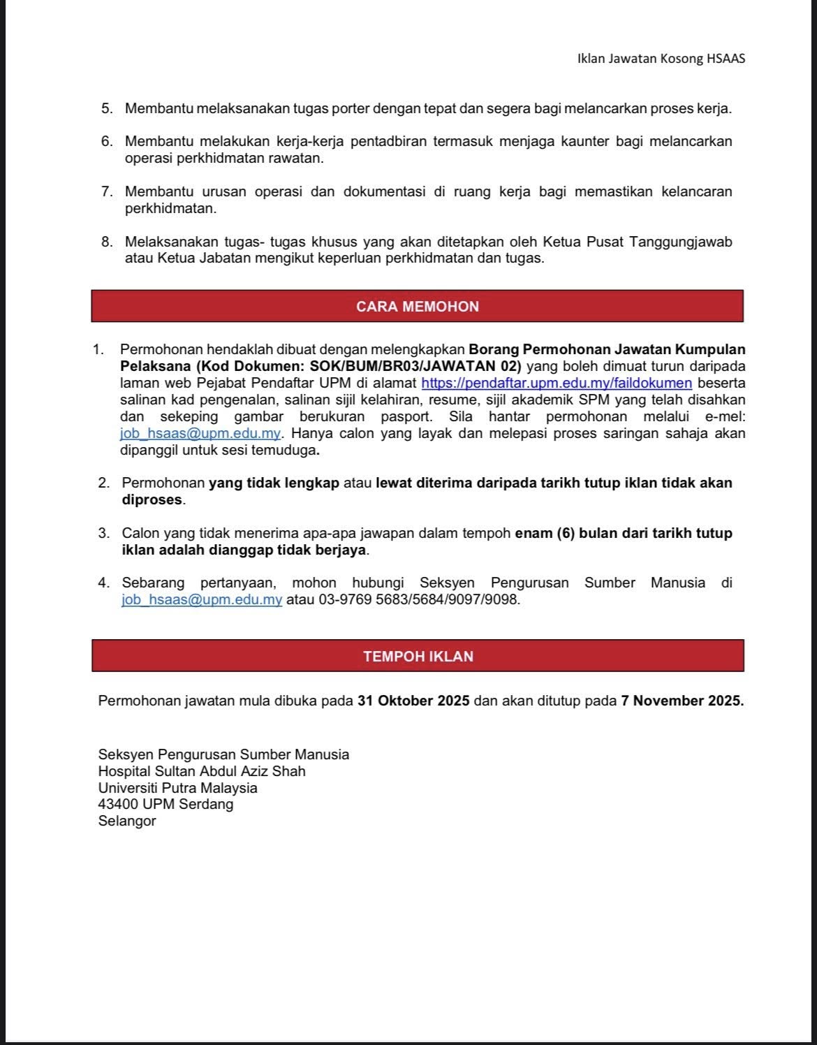 Iklan Jawatan Hospital Sultan Abdul Aziz Shah (HSAAS)