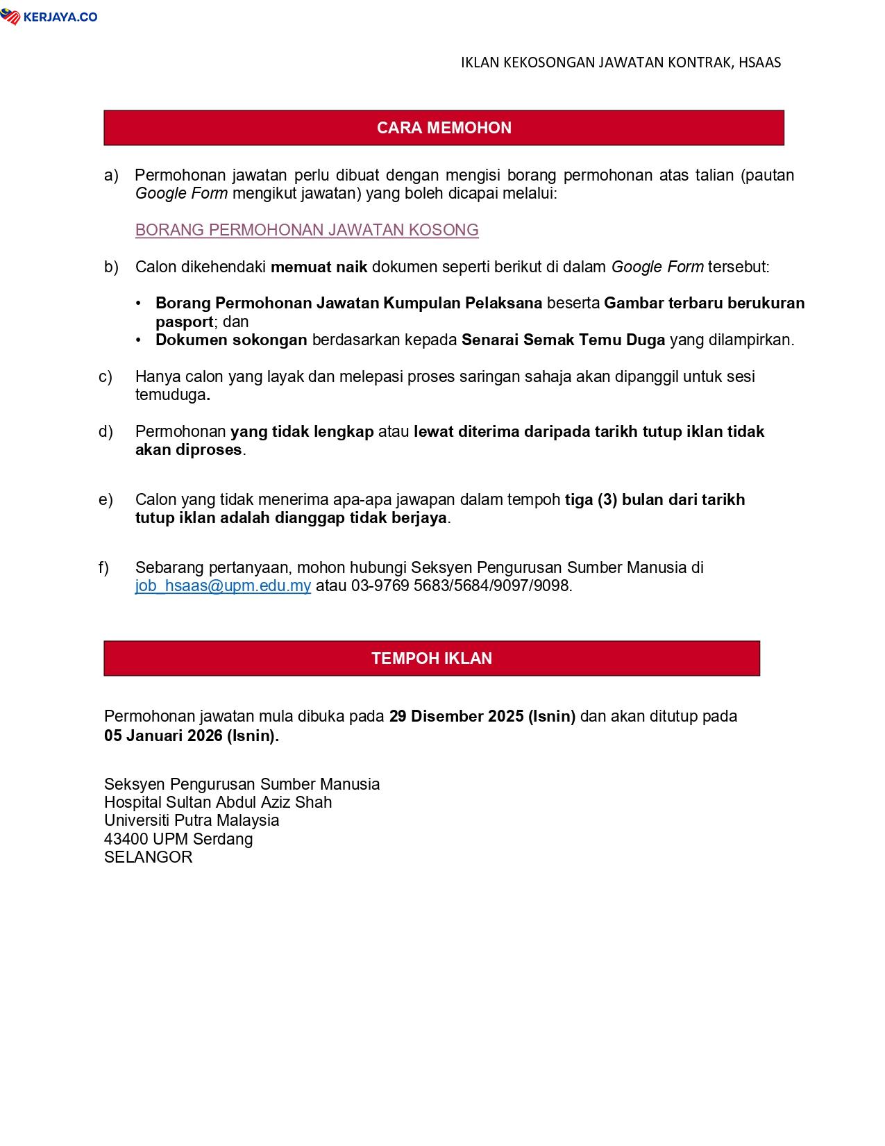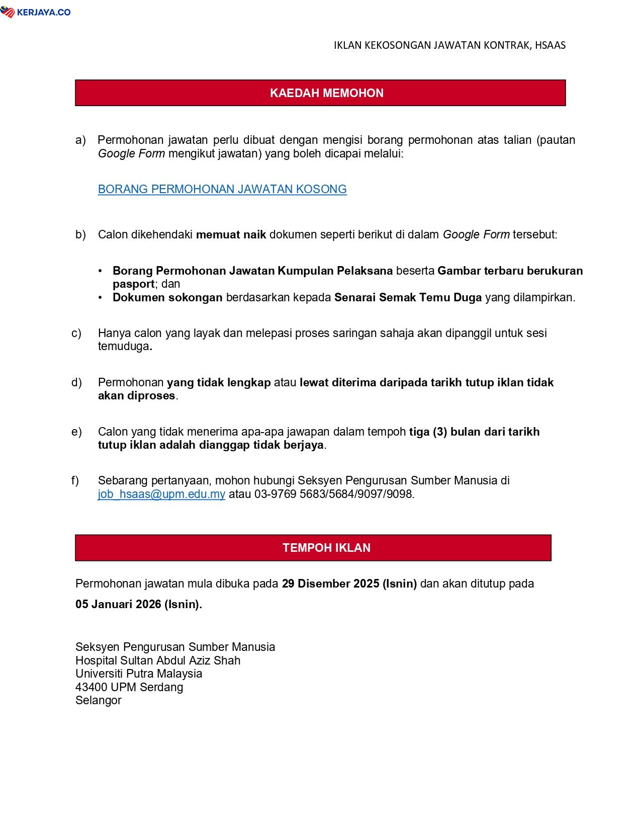 Iklan Jawatan Hospital Sultan Abdul Aziz Shah