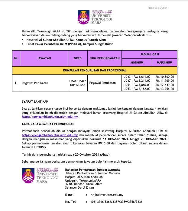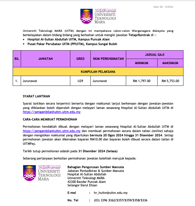 Iklan Jawatan Hospital UiTM (HUiTM)