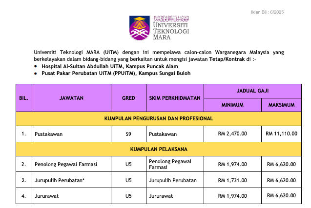 Iklan Jawatan Hospital Universiti Teknologi MARA (UiTM)