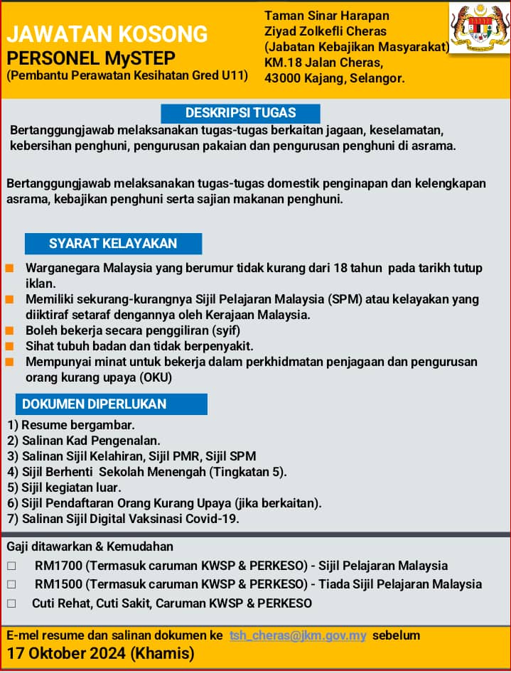 Iklan Jawatan Institusi Orang Kurang Upaya (OKU), Jabatan Kebajikan Masyarakat