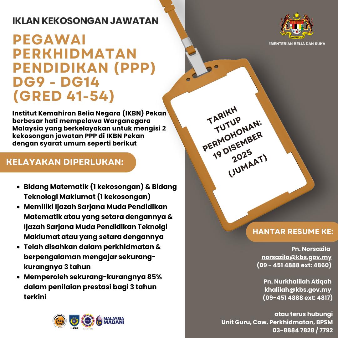 Iklan Jawatan Institut Kemahiran Belia Negara (IKBN) Pekan
