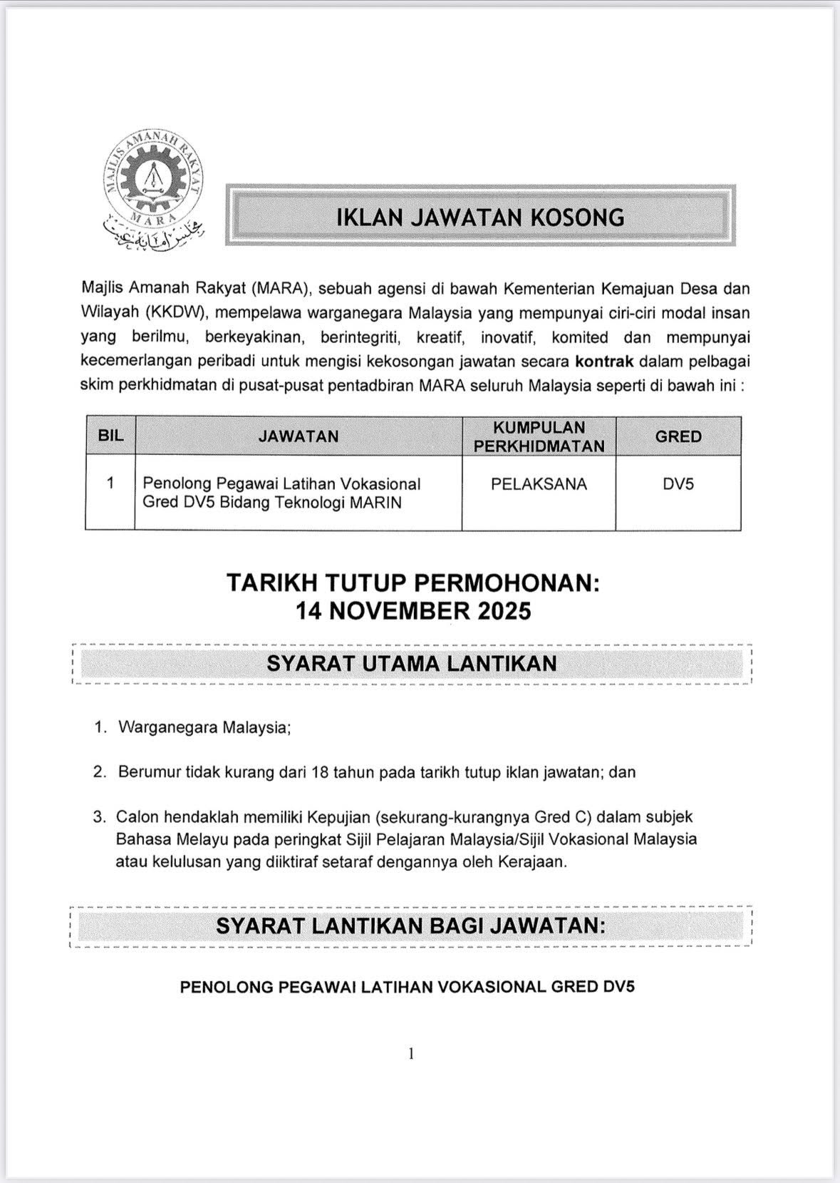 Iklan Jawatan Institut Kemahiran MARA (IKM) Beseri