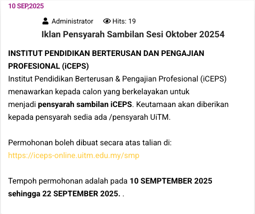 Iklan Jawatan Institut Pendidikan Berterusan dan Pengajian Profesional (iCEPS) IKLAN PENUH JAWATAN & PAUTAN PERMOHONAN