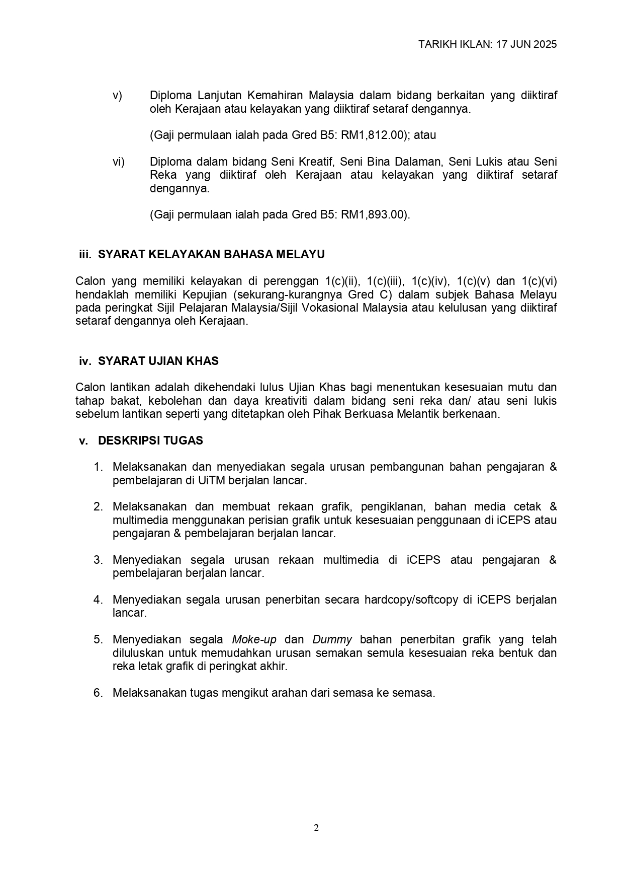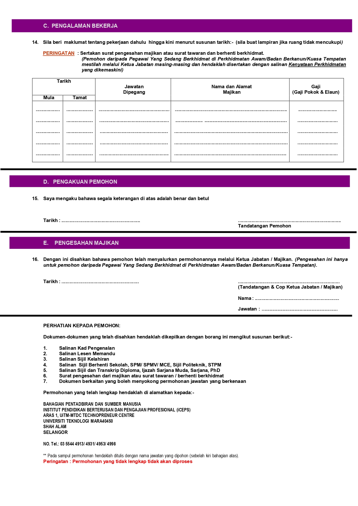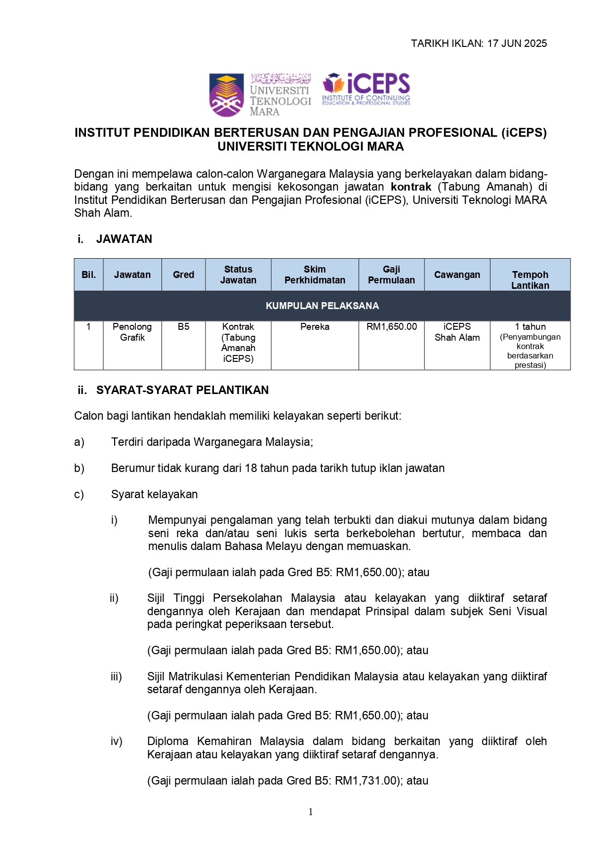 Iklan Jawatan Institut Pendidikan Berterusan Dan Pengajian Profesional (iCEPS) UiTM