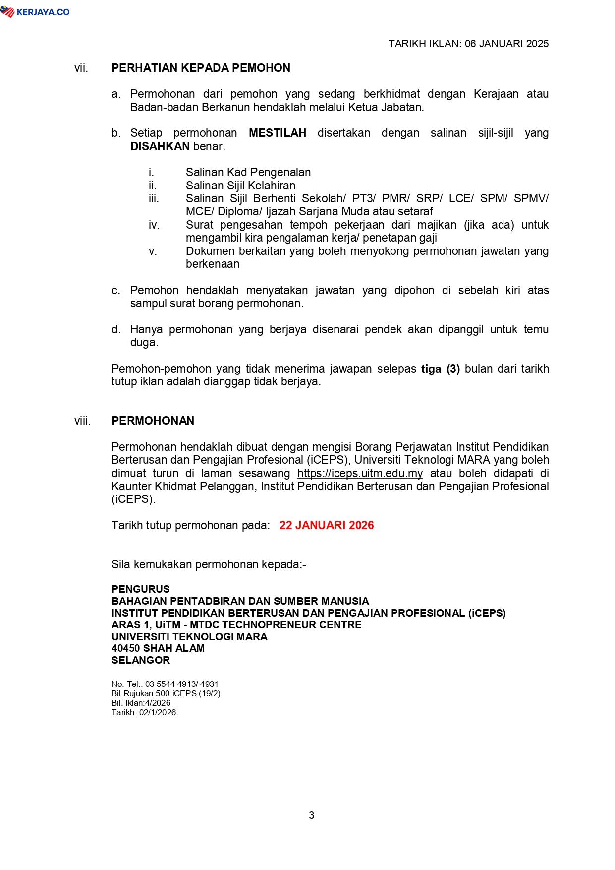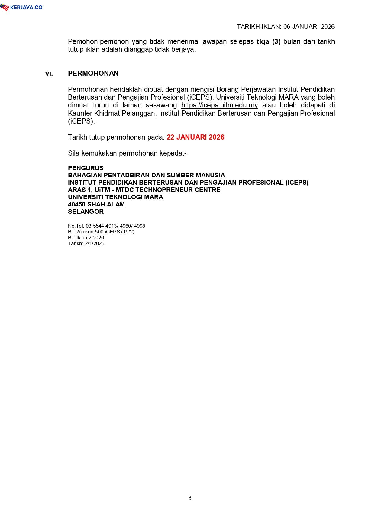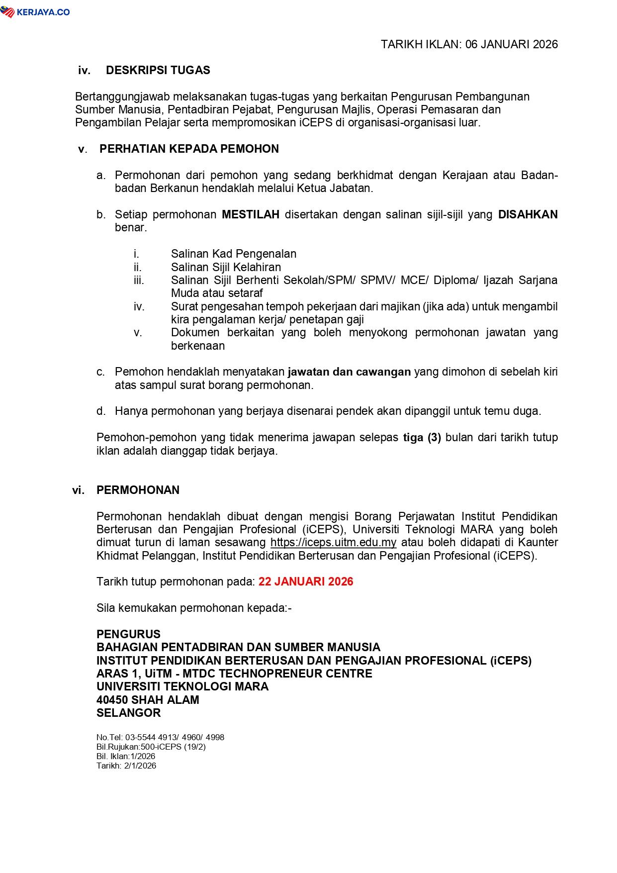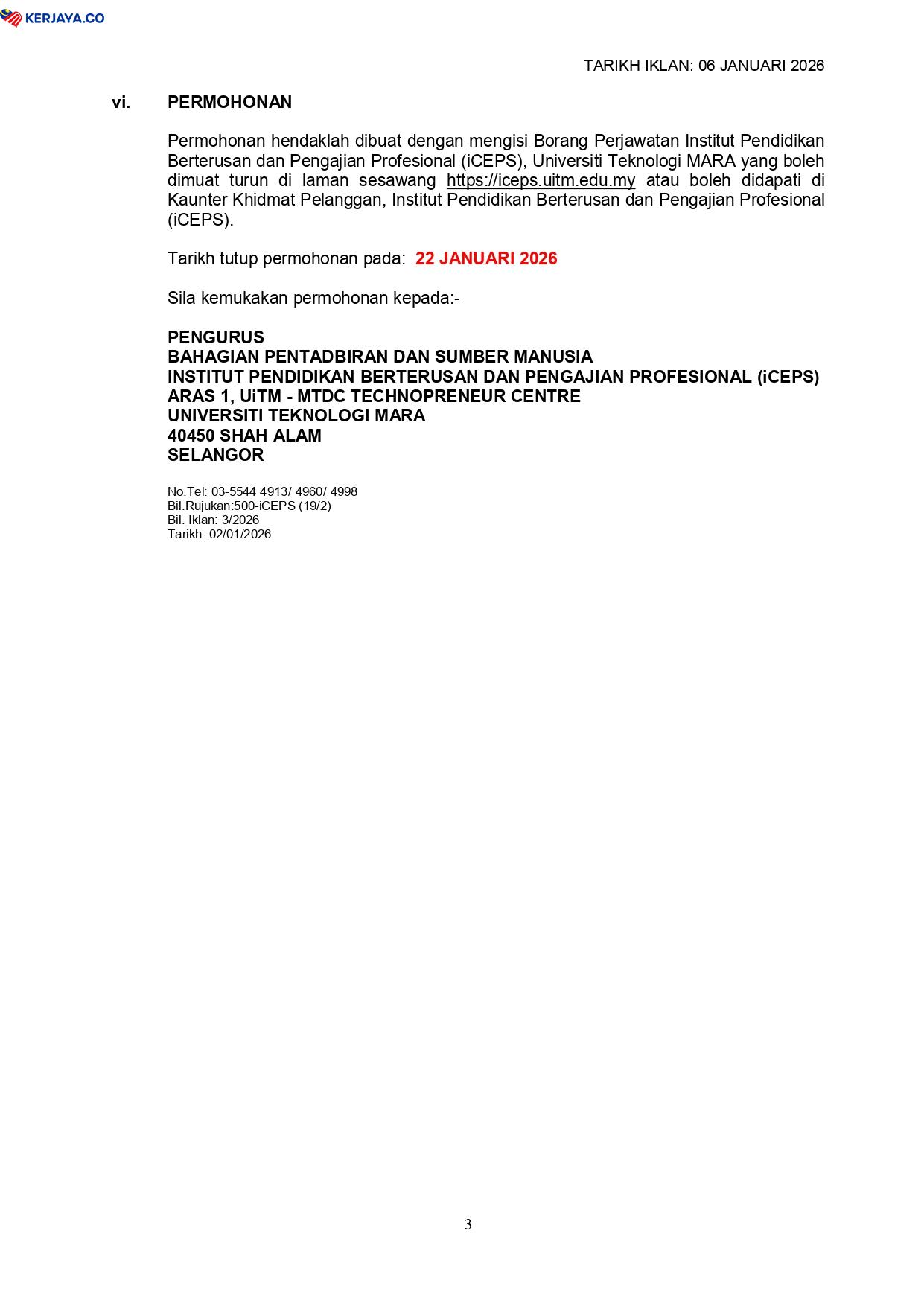 Iklan Jawatan Institut Pendidikan Berterusan Dan Pengajian Profesional (iCEPS) UiTM IKLAN PENUH JAWATAN