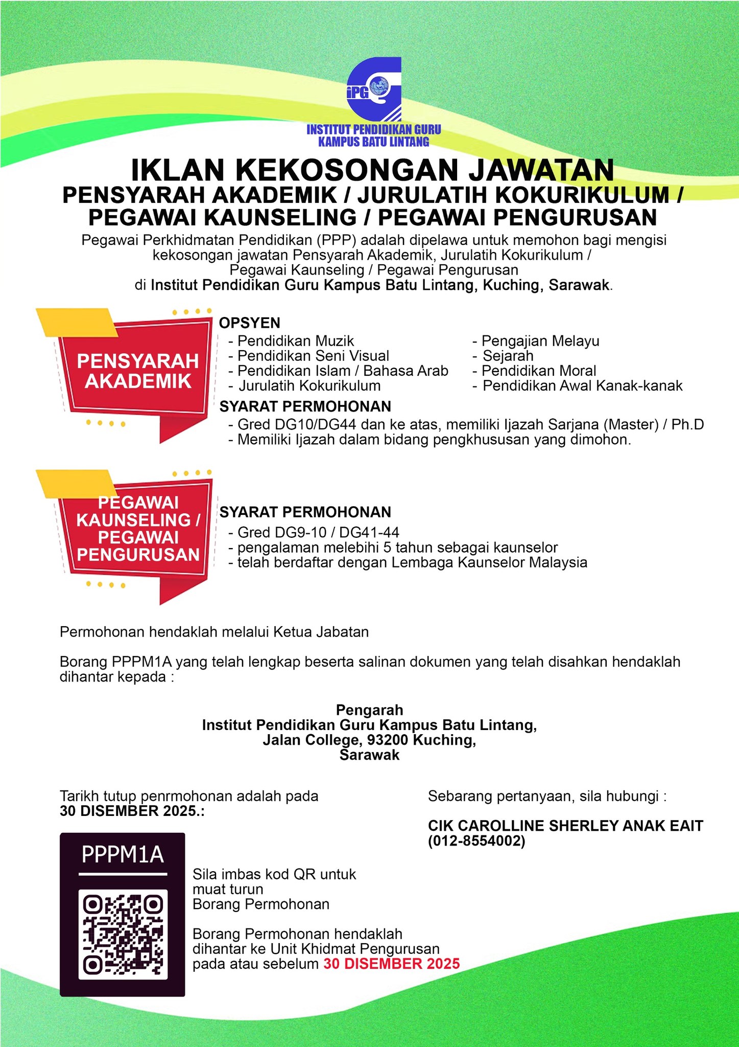 Iklan Jawatan Institut Pendidikan Guru