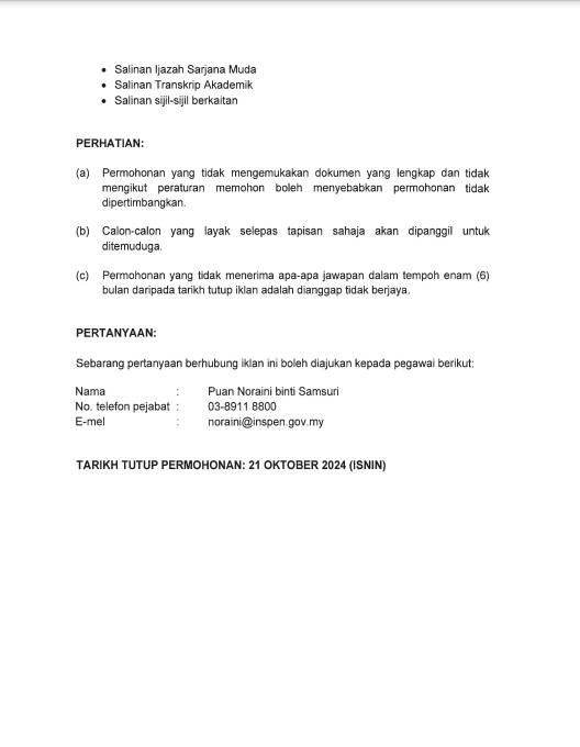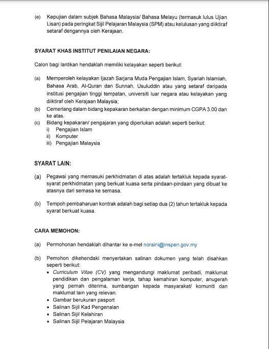 Iklan Jawatan Institut Penilaian Negara (INSPEN)