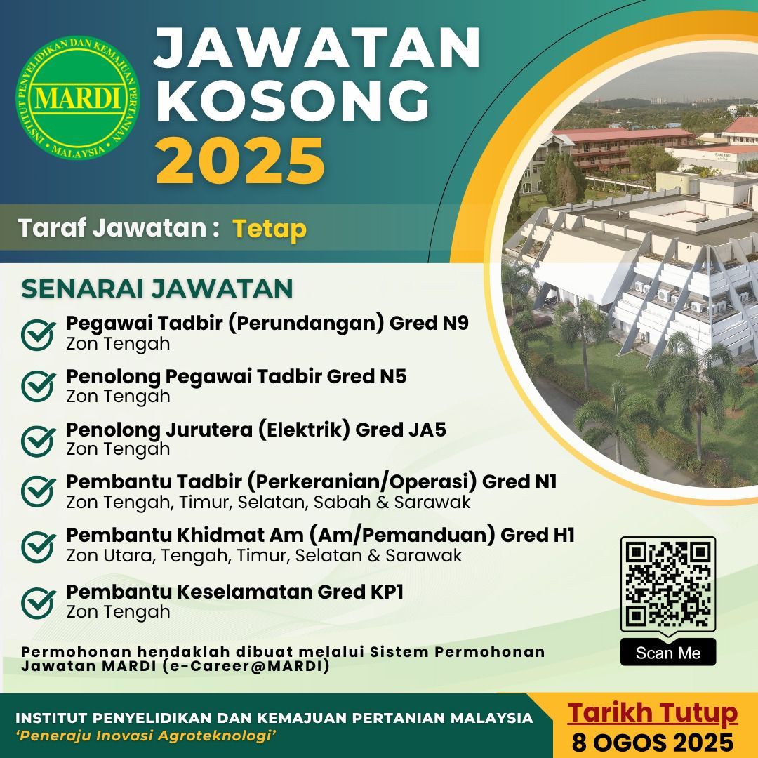 Iklan Jawatan Institut Penyelidikan Dan Kemajuan Pertanian Malaysia (MARDI)
